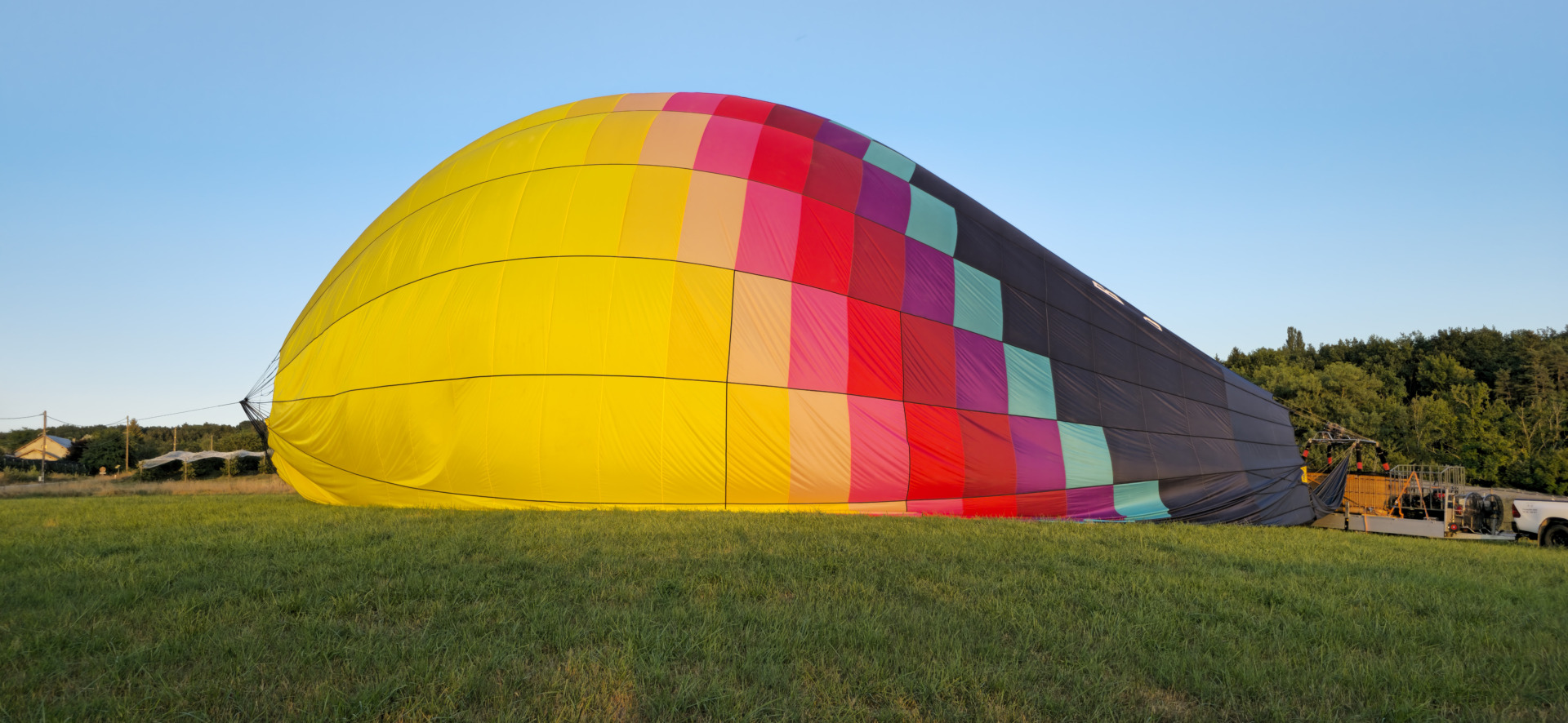 Après avoir été emmenés par la voiture qui tractait la nacelle de la montgolfière, c’était le moment tant attendu du gonflage. Nous avons particulièrement apprécié cette première étape, elle était vraiment impressionnante.